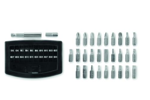 32 piece assorted screwdriver bit set with rotative clip holder.
