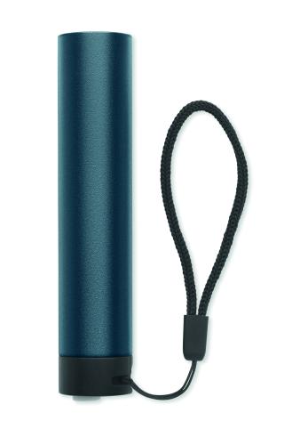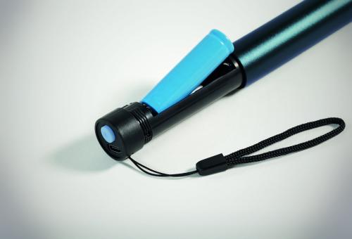 Recycled aluminium rechargeable torch 110 lumen with 3 light settings. 1 replaceable and rechargeable 14500 lithium battery 400 mAh.