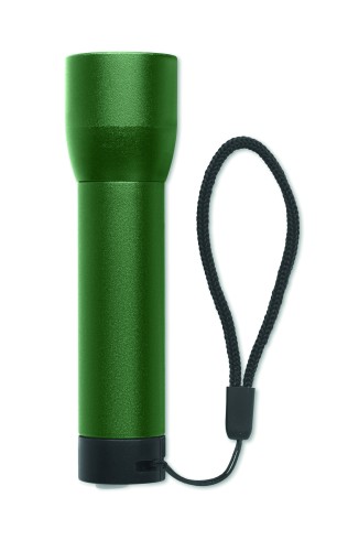 Recycled aluminium rechargeable torch with multiple light settings and zoom in/out function. Includes one replaceable 14500 lithium battery. Powerful and durable for everyday use.