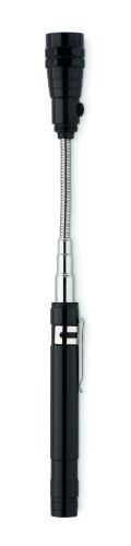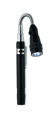Extendable aluminium torch with 3 LED light and magnet on top and clip on side. 4 Batteries LR44 included. Maximum length 57 cm.