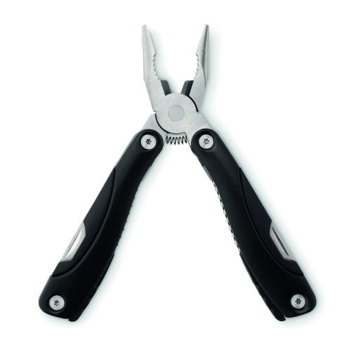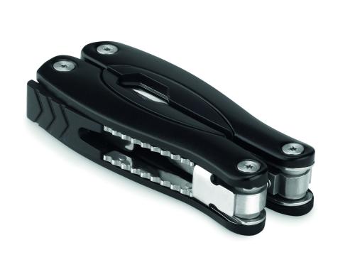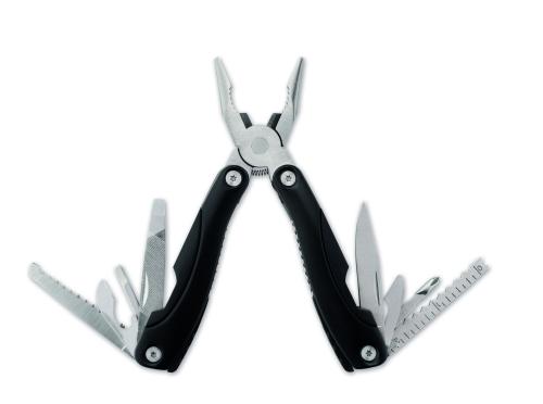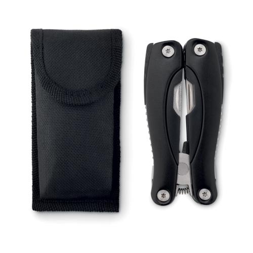 Foldable multi-tool knife in stainless steel. Includes 9 tool functions in ABS including 600D polyester pouch.