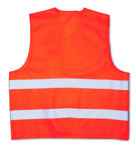 Safety waistcoat made in 100% knitted polyester with Class2 high visibility reflective tape. EN ISO 20471.