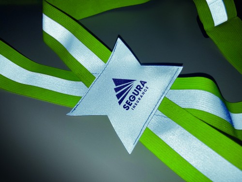 Adjustable 360°reflective body belt with silver stripes. For promotional use only.