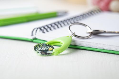 Plastic keyring with shopping trolley coin and metal ring. Coin size: ø24×2 mm.