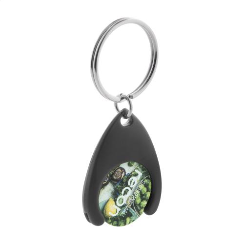 Plastic keyring with shopping trolley coin and metal ring. Coin size: ø24×2 mm.