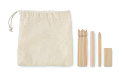 Small pine wood throwing game presented in a cotton drawcord bag. FSC®-certified | FSC 100%, W15.2, FSC-C213206