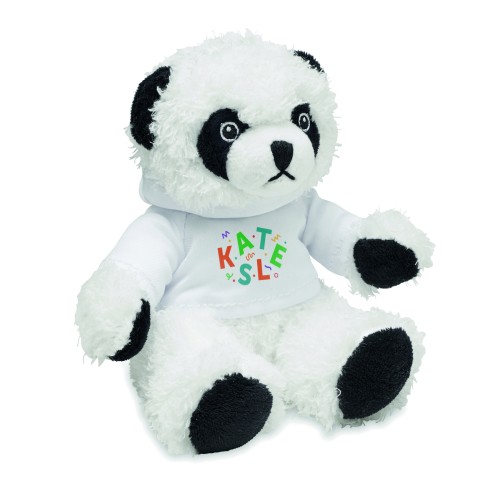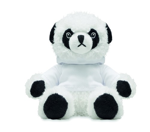 Panda bear plush wearing a hooded sweater. Ideal for sublimation print.
