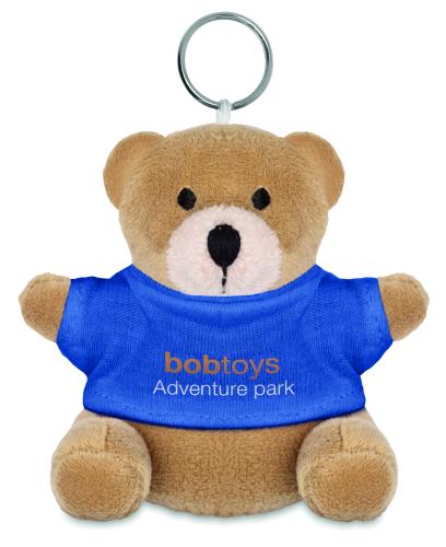 Teddy bear plush key ring. 100% cotton t-shirt for logo imprint.