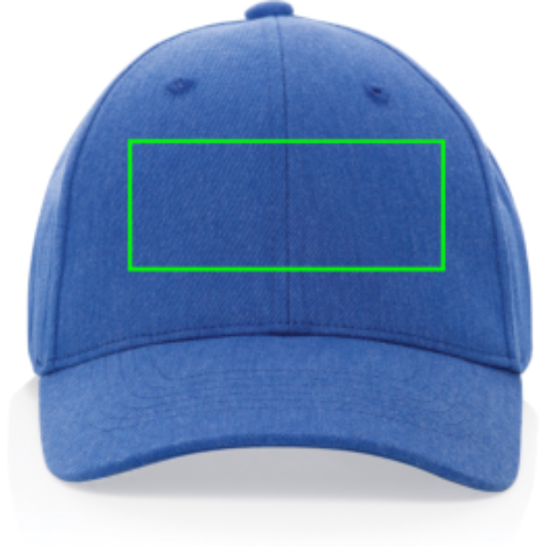 Milo AWARE™ heather 6 panel cap. 70% recycled cotton & 30% recycled polyester. Cap comes with metal buckle closure.