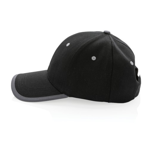 Tell a true story about sustainability and wear it with pride! This 6 panel contrast cap with curved visor is made with brushed recycled 280gr cotton that is embedded with AWARE™ tracer technology. With AWARE™, the use of genuine recycled fabric materials and water reduction impact claims are guaranteed. Save water and use genuine recycled fabrics. If you choose this item you save 250 litres of water. With the focus on water, 2% of proceeds of each Impact product sold will be donated to Water.org. The contrast cap has a dark grey binding and velcro closure. Water savings are based on figures when compared to conventional fibre. This calculated indication is based on reliable LCA data as published by Textile Exchange in their Material Snapshots 2016.