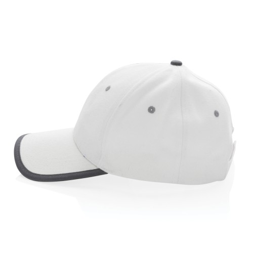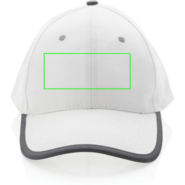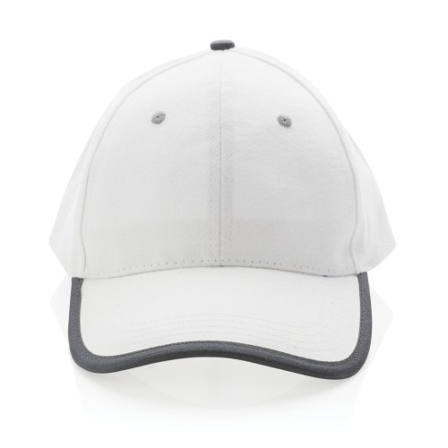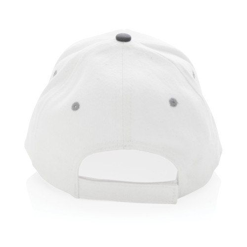 Tell a true story about sustainability and wear it with pride! This 6 panel contrast cap with curved visor is made with brushed recycled 280gr cotton that is embedded with AWARE™ tracer technology. With AWARE™, the use of genuine recycled fabric materials and water reduction impact claims are guaranteed. Save water and use genuine recycled fabrics. If you choose this item you save 250 litres of water. With the focus on water, 2% of proceeds of each Impact product sold will be donated to Water.org. The contrast cap has a dark grey binding and velcro closure. Water savings are based on figures when compared to conventional fibre. This calculated indication is based on reliable LCA data as published by Textile Exchange in their Material Snapshots 2016.