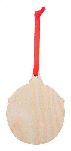Wooden Christmas tree ornament in birch plywood, with printed Christmas design and red ribbon. Delivered with detached ribbon.