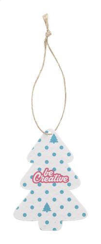 Custom made, full colour printed Christmas tree ornament in seed paper with linen string. Price includes digital printing on one side. With assorted wildflower seeds. MOQ: 100 pcs.