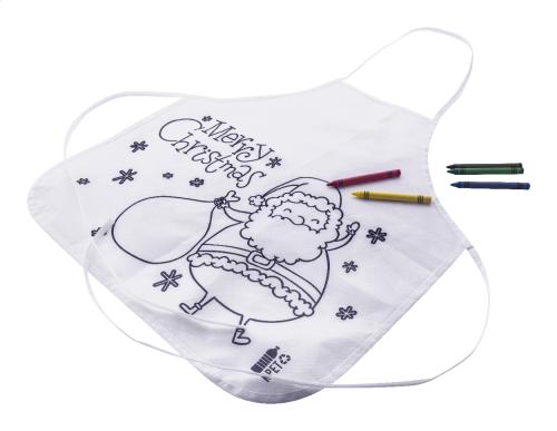 Colouring Christmas apron for children in RPET non-woven with 5 crayons.