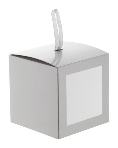 Glittered Christmas ball ornament in PU foam with ribbon hanger. Ball diameter: 75 mm. In matching colour paper gift box.
