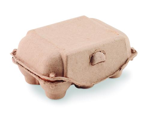 Set of 6 chalk eggs in a recycled cardboard egg box.