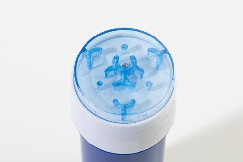 Plastic bubble bottle with dexterity puzzle on the cap. Without bubble liquid. Capacity: 60 ml.