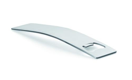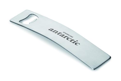 Elegant and curved bottle opener in robust stainless steel.