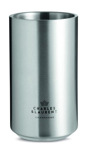 Double wall stainless steel bottle cooler in round shape.