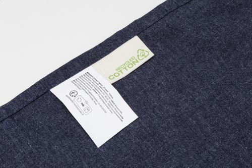 Kitchen apron in 70% recycled cotton and 30% RPET polyester, 180 g/m². With distinctive recycled cotton label.