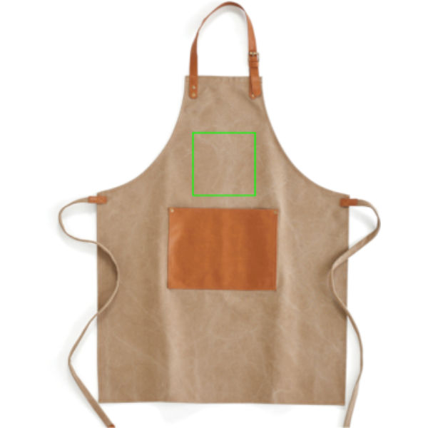 Robust apron in stonewashed canvas 500 gsm with PU material details. An apron that ages with dignity.