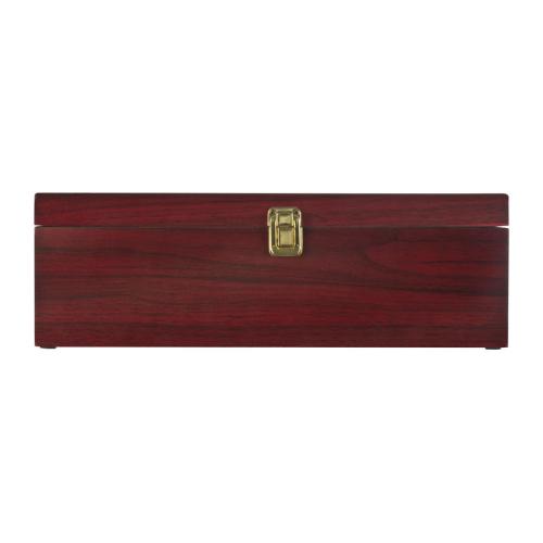 Wooden wine box* with integrated waiter's knife, bottle cap, spout, and drop ring. An additional wooden partition wall provides more stability to the wine bottle.