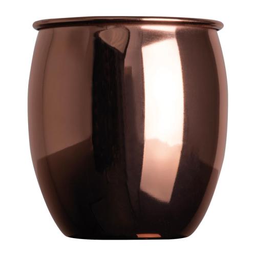 Stainless steel mug with copper coating, golden handle and a capacity of 500ml. Ideal for cocktails or other drinks.