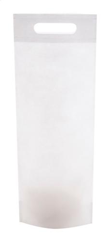 Custom made non-woven wine bag with die-cut handles, 80 g/m². With sublimation printed graphics on both sides. MOQ: 50 pcs.