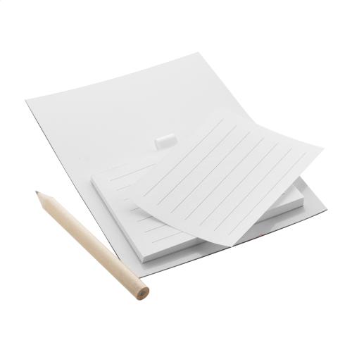 Coloured fridge magnet with 40 sheets notepad and mini wooden pencil.