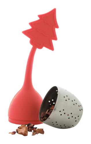 Silicone and stainless steel tea infuser with Christmas tree shape.
