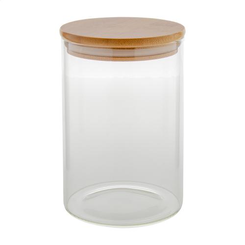Borosilicate glass storage jar with bamboo lid, 550 ml. Ideal to store dry foods and ingredients.