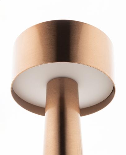 Golden finish metal table lamp with 24 LEDs, adjustable brightness and 800 mAh USB rechargeable battery. With warm, natural and cool light modes. Including USB charger cable.