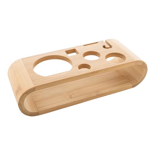 7 pc stainless steel cocktail set in bamboo holder. Including: cocktail shaker (550 ml), jigger, strainer, bar spoon, muddler, ice tongs and a pouring sprout.