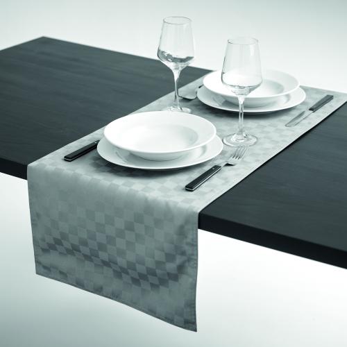 Table runner in polyester 185 gr/m² with microfibre and non-woven lining with water repellent finish on the front side. Dimensions: 140x40 cm.