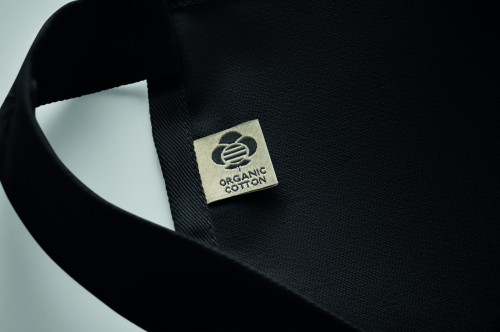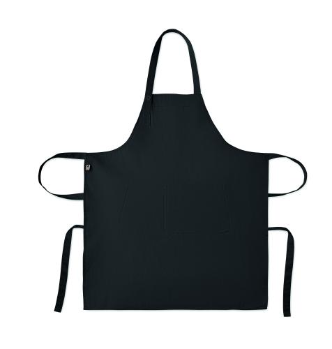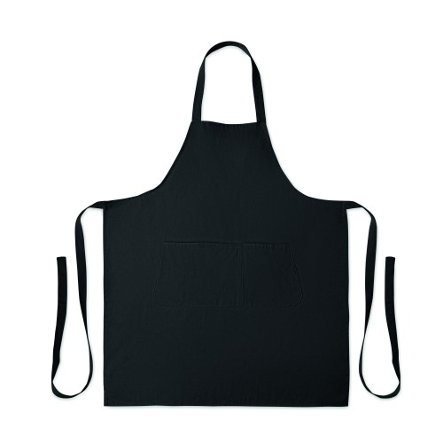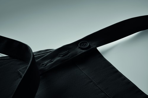 Adjustable bib apron with 1 large front pocket with 2 compartments in 240 gr/m² organic cotton. With adjustable button on the neck strap.