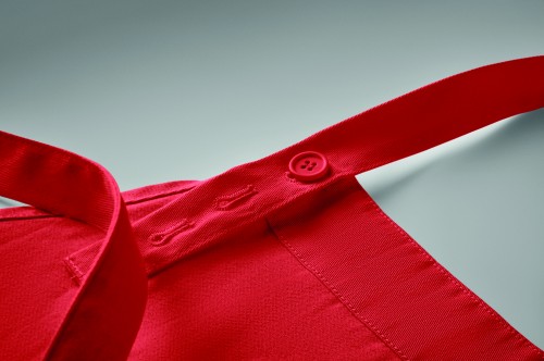 Adjustable bib apron with 1 large front pocket with 2 compartments in 240 gr/m² organic cotton. With adjustable button on the neck strap.