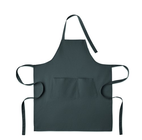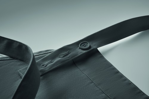 Adjustable bib apron with 1 large front pocket with 2 compartments in 240 gr/m² organic cotton. With adjustable button on the neck strap.