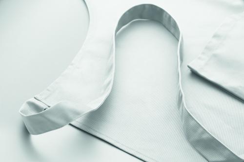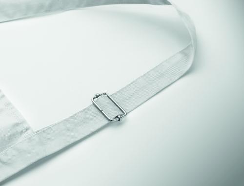 Long adjustable kitchen apron in 240 gr/m² polycotton (35% cotton, 65% polyester) with two front pockets and adjustable strap with metal buckle.
