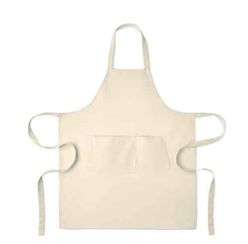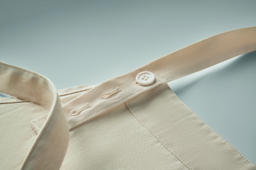 Adjustable bib apron with 1 large front pocket with 2 compartments in 240 gr/m² organic cotton. With adjustable button on the neck strap.