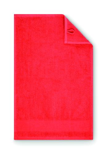 Guest towel made of 100% cotton, 380 gr/m² fabric with cotton hanger loop. Soft and absorbent design. Size 30 cm x 50 cm.