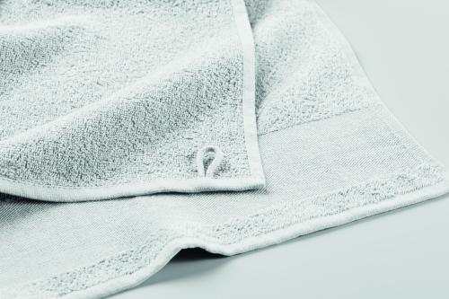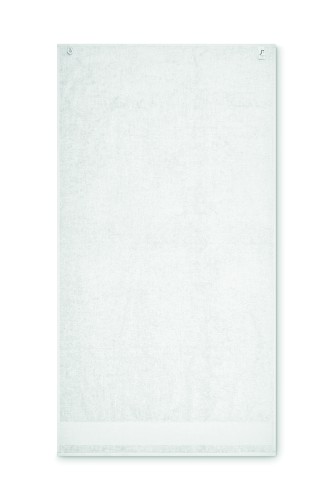 Bath towel made of 100% cotton, 380 gr/m² fabric with cotton hanger loop. Soft and absorbent design. Size 70 cm x 140 cm.