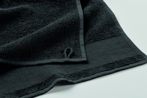 Bath towel made of 100% cotton, 380 gr/m² fabric with cotton hanger loop. Soft and absorbent design. Size 100 cm x 150 cm.