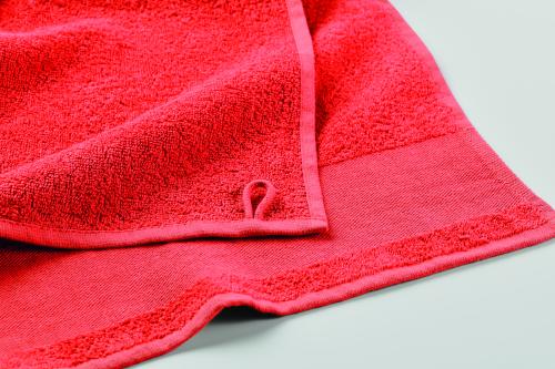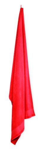 Bath towel made of 100% cotton, 380 gr/m² fabric with cotton hanger loop. Soft and absorbent design. Size 100 cm x 150 cm.