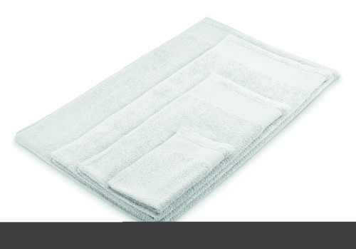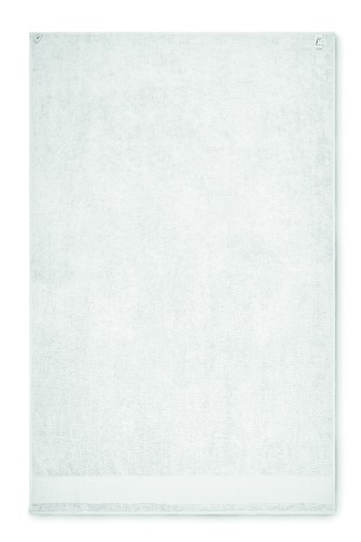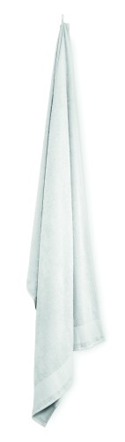 Bath towel made of 100% cotton, 380 gr/m² fabric with cotton hanger loop. Soft and absorbent design. Size 100 cm x 150 cm.
