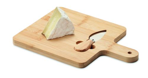 Bamboo Cheese set serving board with serving knife. Bamboo is a natural product, there may be slight variations in colour and size per item, which can affect the final decoration outcome.