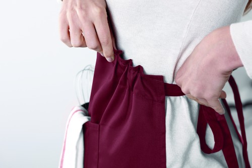 Adjustable kitchen apron with 2 front pockets in 10% cotton/90% polyester, 190gr/m².