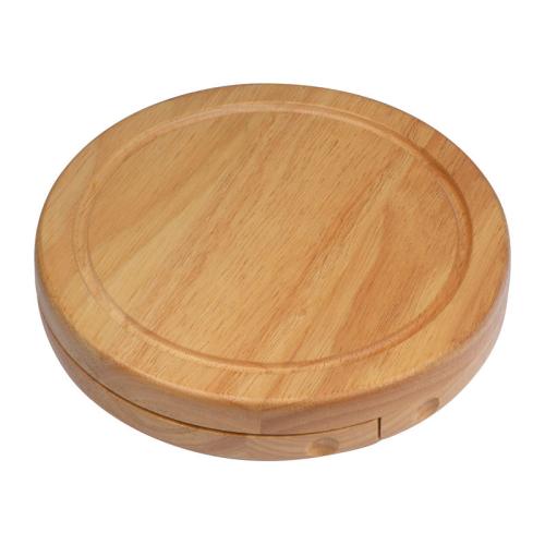 Chopping board made of wood with three different cheese cutlery. By simply sliding it open, you can easily take out the cheese knives, and every piece is optimally stored.