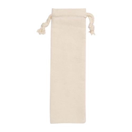 Bamboo cutlery, consisting of a fork, a knife and a spoon in a cotton bag. Suitable for camping or other outdoor activities.