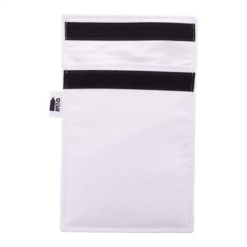 Custom made, reusable snack bag in 600D RPET polyester with durable waterproof lining and velcro closure. Ideal for wrapping snacks or a sandwich. With all over sublimation printed graphics. MOQ: 25 pcs.