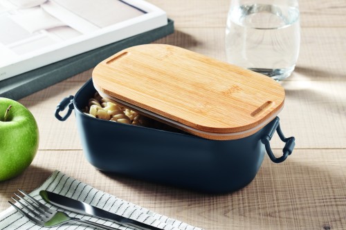 PP lunch box with 2 side clasp closures and bamboo lid. Capacity 700 ml.